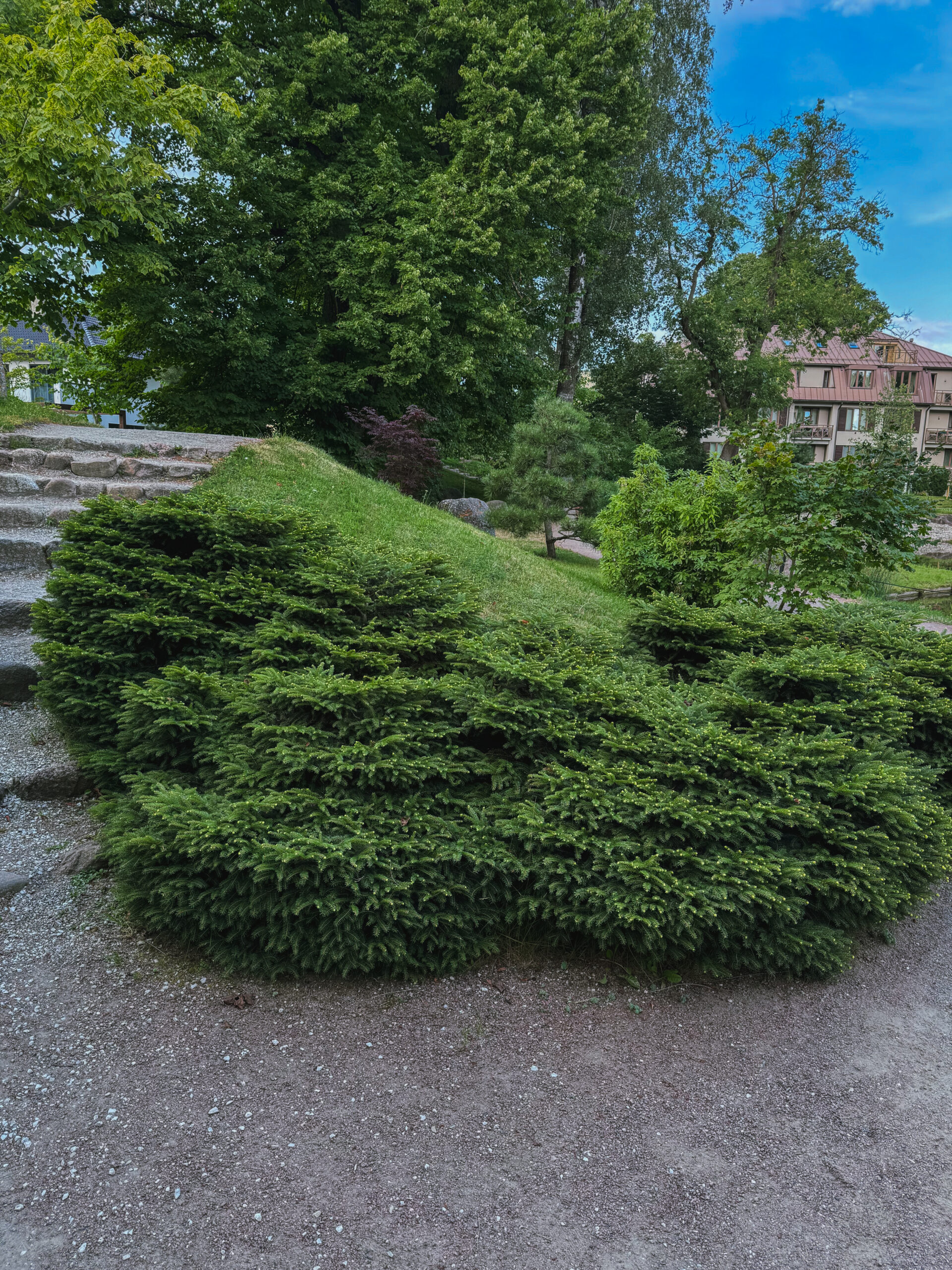 Aeglasekasvuline tihe lehterjas (pesakujuline) vorm. Kasvatab uusi horisontaalseid oksakihte.