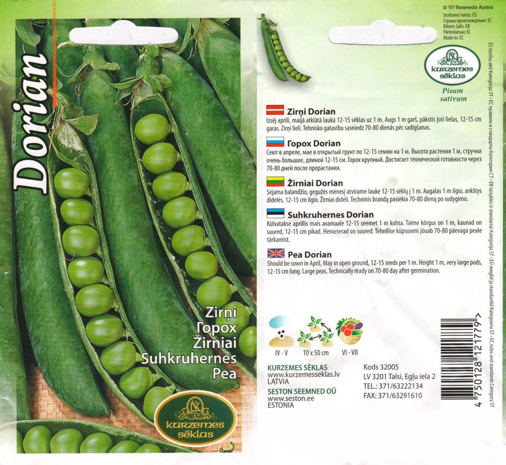 Ранний сорт. Высота растения до 100 см. Стручки lj 15 см.